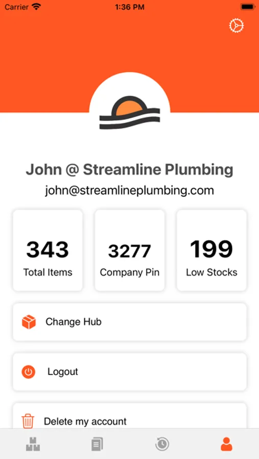 Account - is where you can change your Hub if you are managing multiple inventory locations