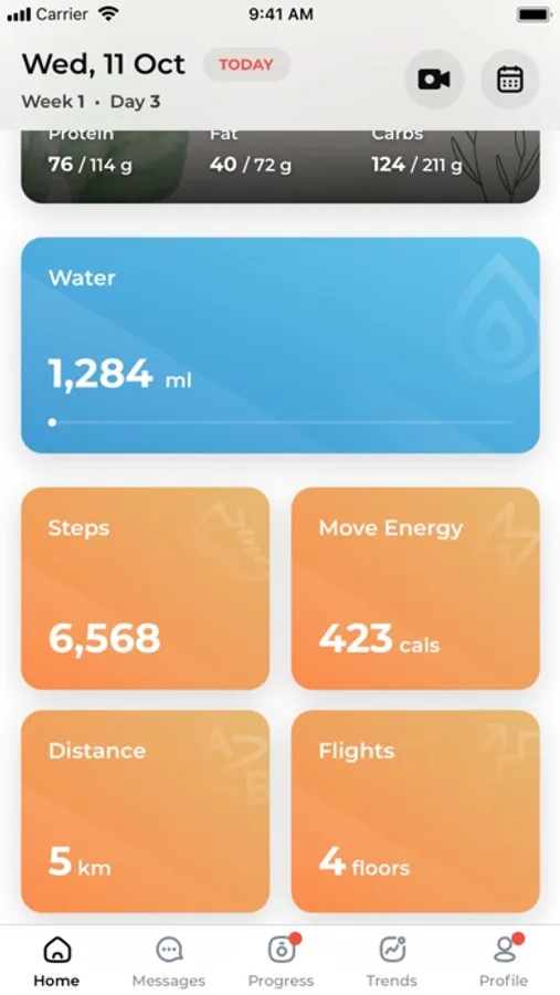 The app integrates with Apple Health to show your daily activity - distance, steps, active energy, and flights to help you better achieve your goals.