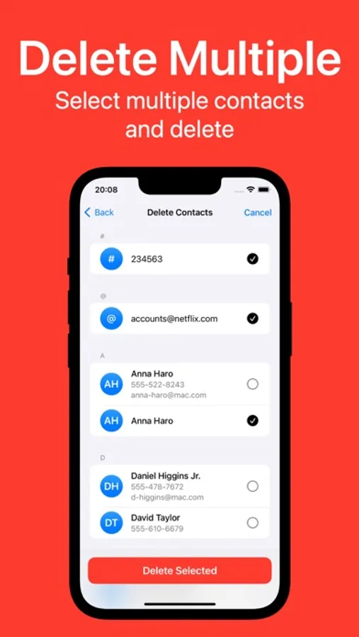 MultiDelete Contacts: Select and delete multiple contacts in bulk perfect for quick cleanups.