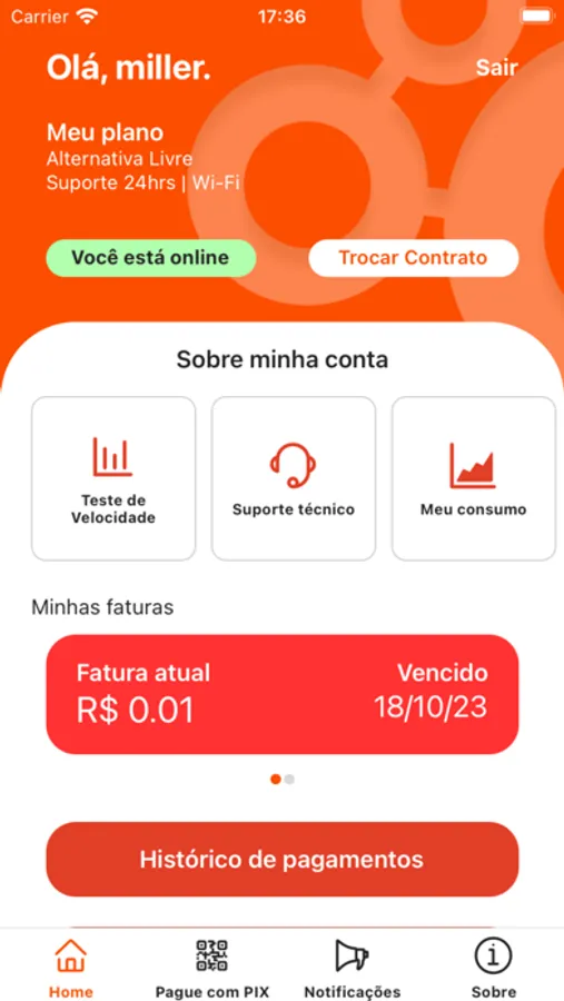 O Aplicativo Alternativa Mais centraliza os serviços essenciais ao alcance do usuário. Realize pagamentos com um toque, sem a necessidade de navegar por múltiplas plataformas. O teste de velocidade integrado garante que os usuários verifiquem a performance de sua conexão em tempo real, assegurando a entrega adequada do serviço contratado.