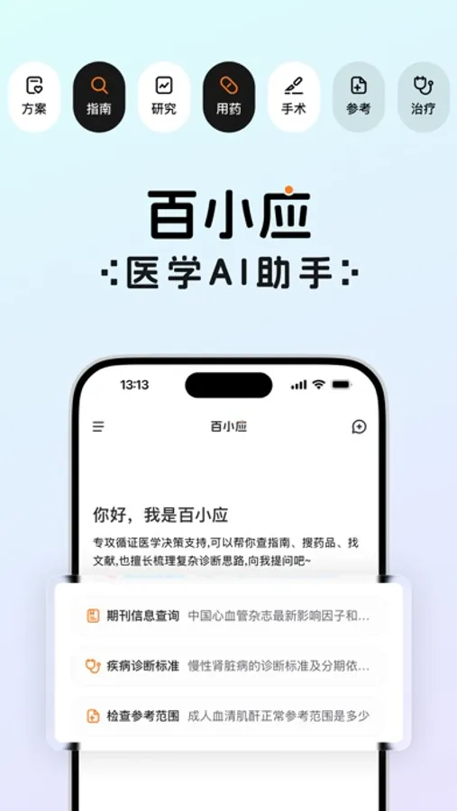 百小应-查指南、找文献、搜药品,每一条医学建议都有据可依!