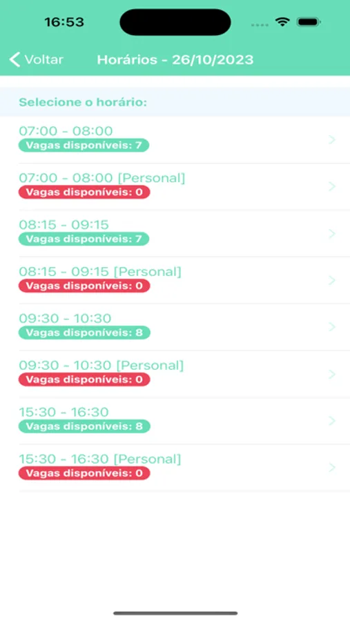 - Visualizar todos os horários de aulas e disponibilidade de vagas;