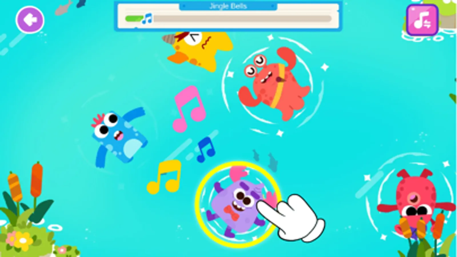 - MAGICAL MUSIC POND – Play a classic nursery rhyme by tapping on the cute little monsters as they float across the surface of the pond. Each tap plays a note, see if you can find the rhythm!