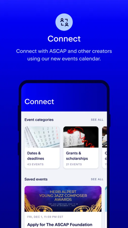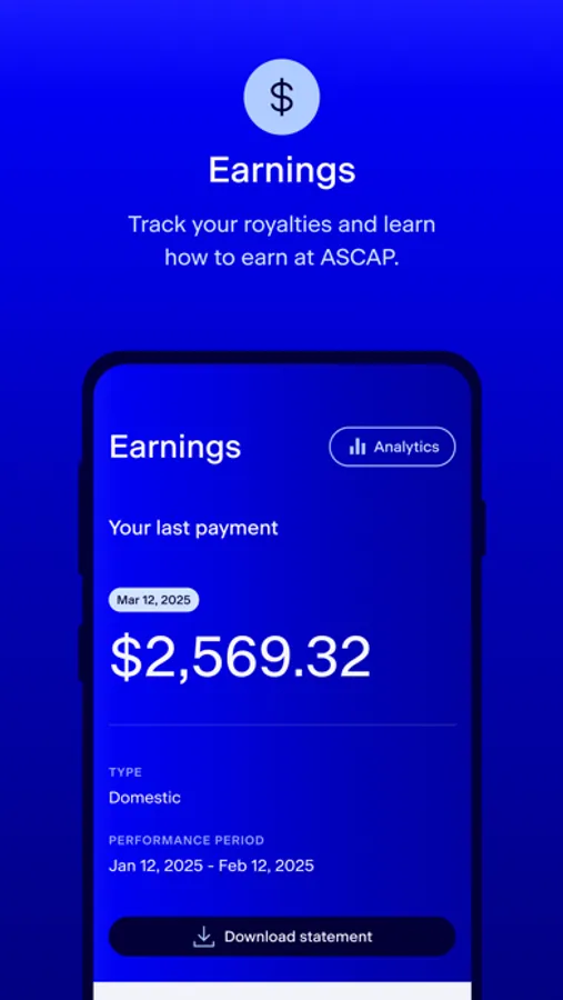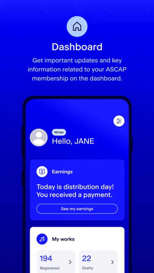 The ASCAP app connects you to your ASCAP account, with innovative tools to help you get the most out of your membership, and boost your music career. Think of it as a music manager in your pocket.