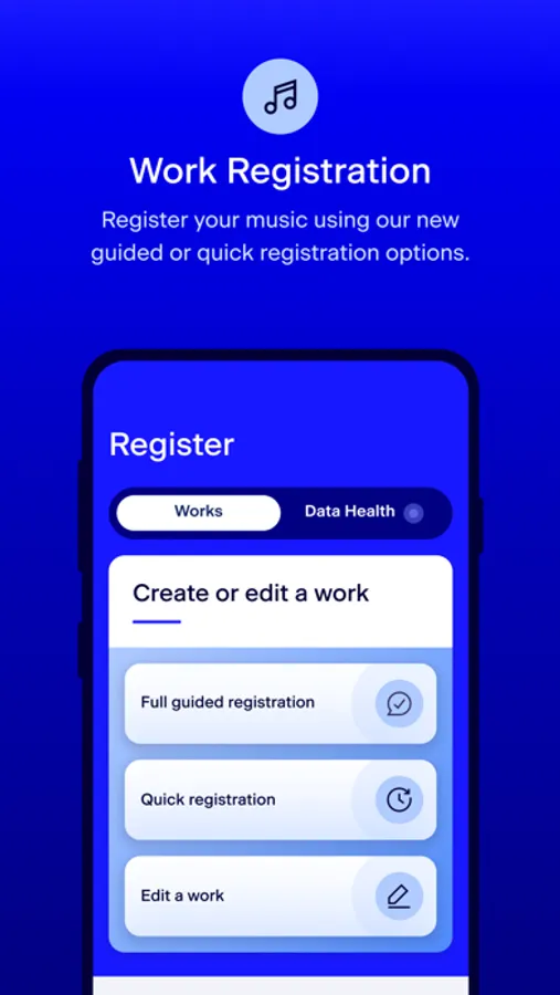 - Add to your ASCAP catalog with our step-by-step guided or quick registration options