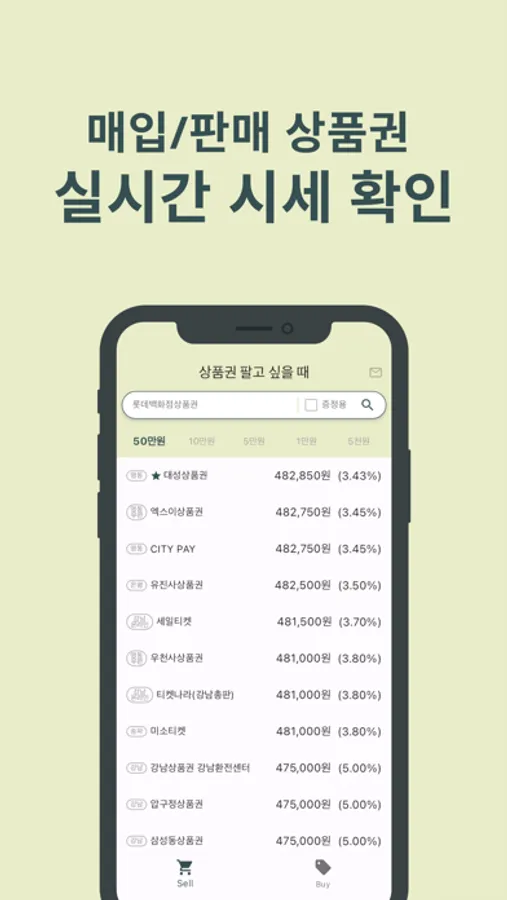 다양한 상품권의 실시간 시세를 '세상시' 어플에서 바로 확인하실 수 있습니다!