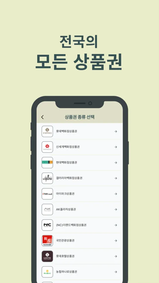 백화점 상품권, 마트 상품권, 호텔 상품권, 주유상품권 비롯한