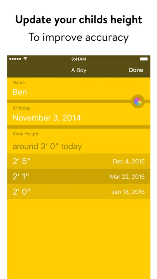 To improve height estimation by »Next Size – Kids Clothing« consider occasional measurement updates: once per year for older children, more frequent for toddlers.