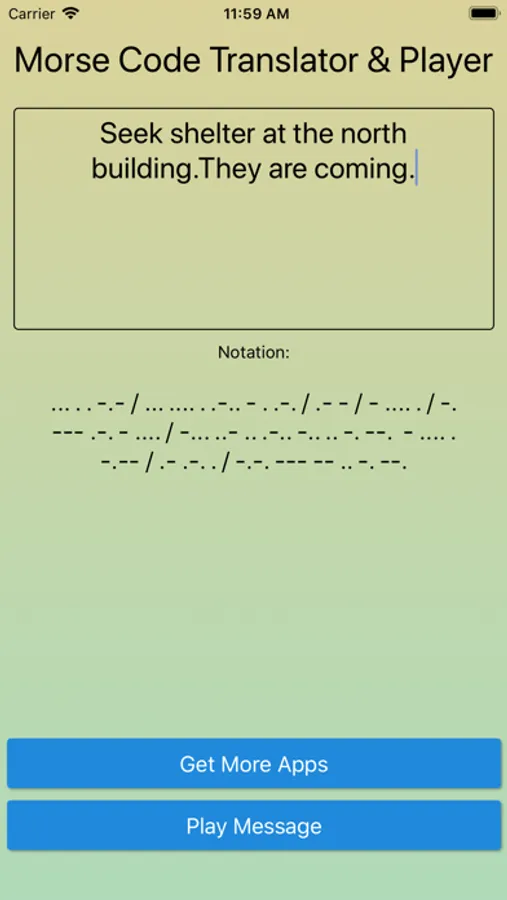 See auto generated morse notation, learn letters and words in morse, or just press play to send dots and dashes via your devices speakers.