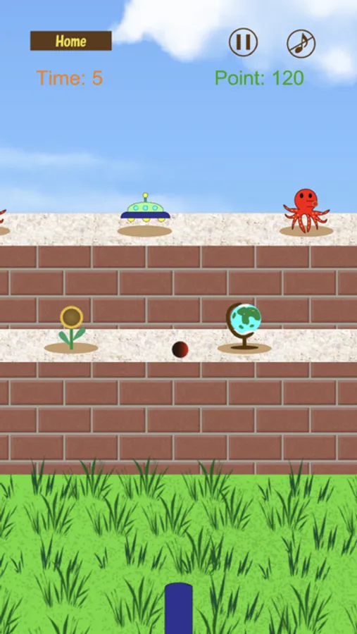 Sunflower (10 points), Flower (10 points), Frog (20 points), Octopus (20 points), Elephant (20 points), Globe (30 points), Car (30 points), UFO (30 points), Coin ( 50 points), trophy (100 points), bomb (-30 points)