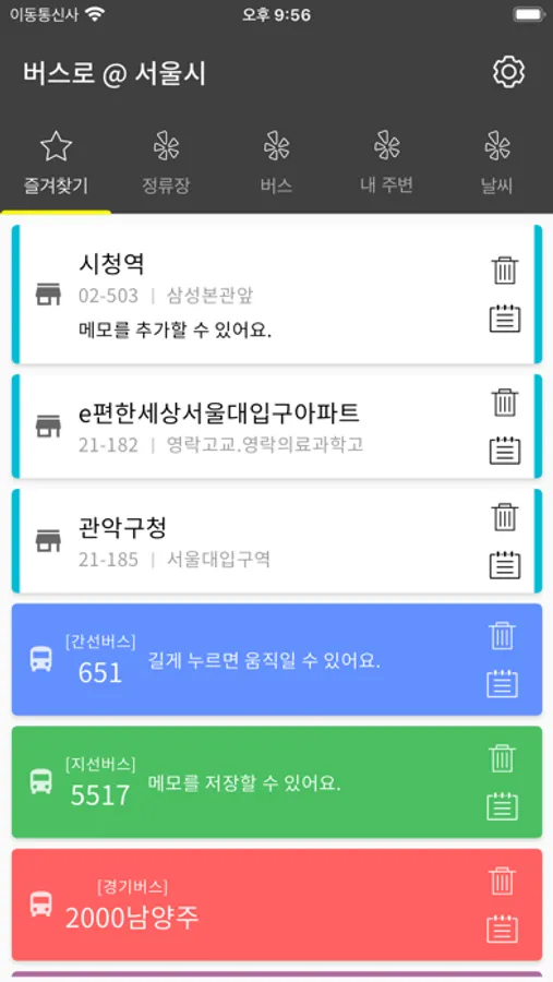 - 자주 이용하는 버스 정류장과 노선, 지하철 역을 저장해 두고 편리하게 이용하세요.