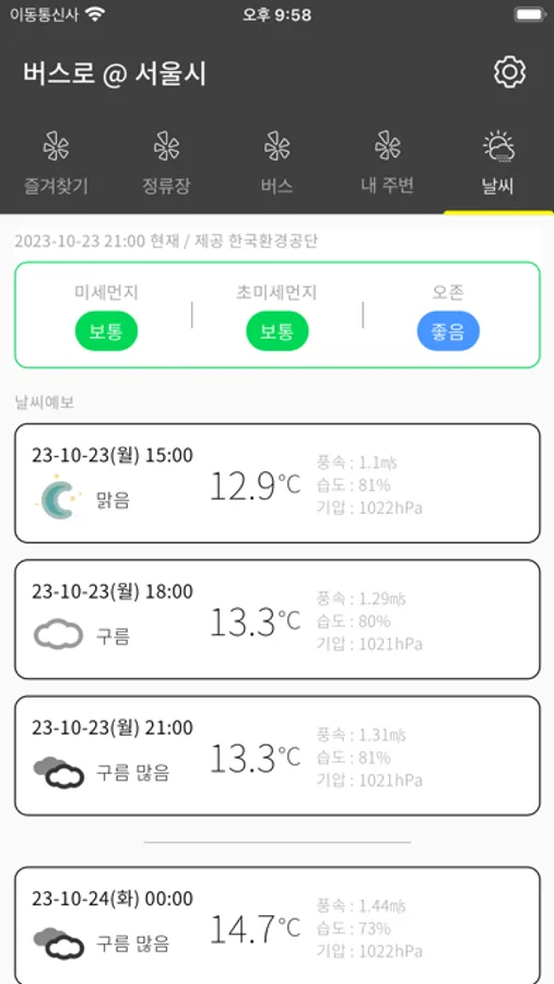 - 대기환경 정보와 날씨예보를 확인할 수 있어요.