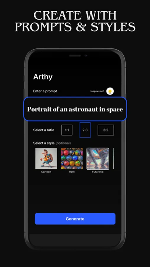 Download Arthy - AI Art Generator now and embark on an artistic journey where the boundaries of creativity disappear. From AI photo generators to AI art makers, Arthy empowers you to explore the endless possibilities of AI-generated artistry.