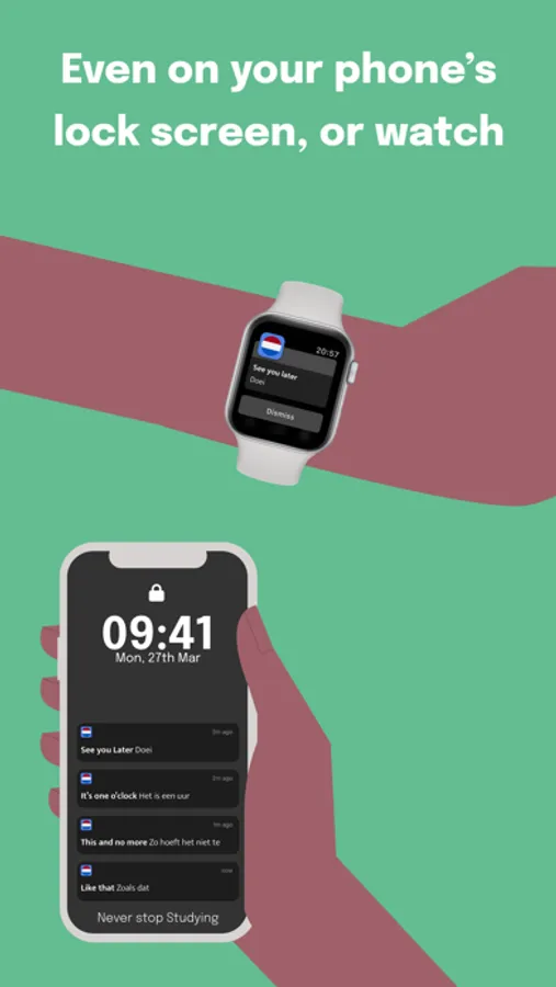 - Study without even opening the app, on your lock screen or smartwatch, with flexibly scheduled notifications