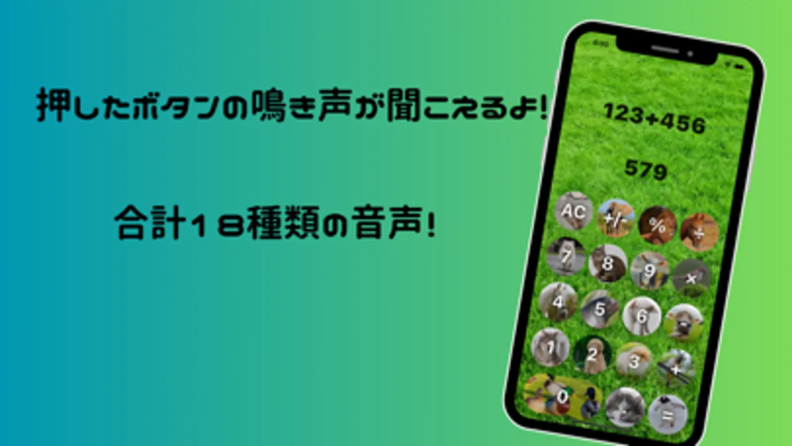 The Animal Calculator plays realistic sounds of the animals when you press the buttons. Each time you perform a calculation, you will hear the voices of different animals.