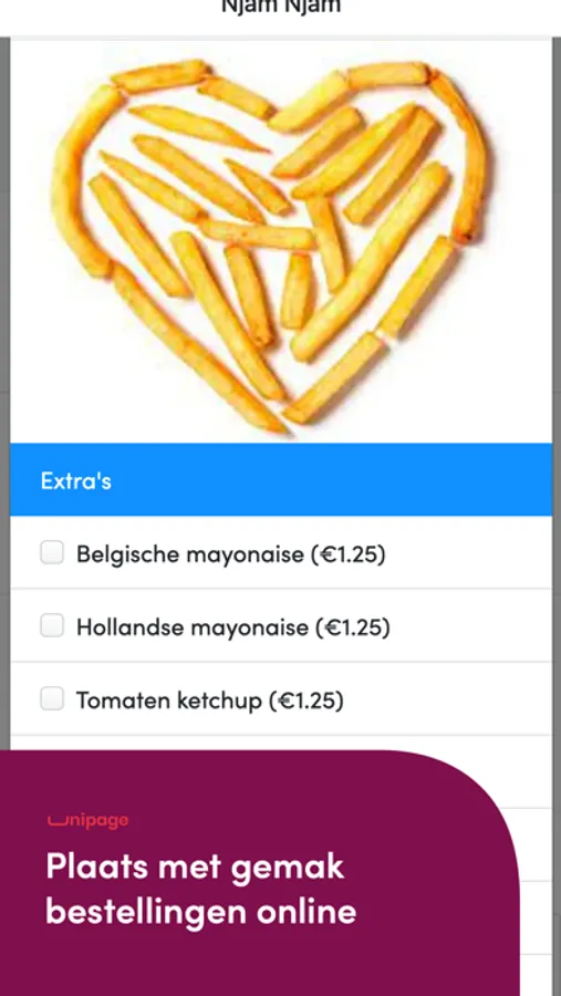 Probeer nu onze nieuwe app en ontdek hoe makkelijk en snel je je favoriete afhaalmaaltijden kan bestellen! Je kan al direct betalen en de vooruitgang volgen van je bestelling. Zo weet je precies wanneer je maaltijd klaar is om afgehaald te worden. Bon appétit!