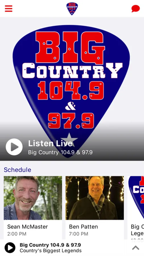 Listen live anytime to the Country's Biggest Legends on the Big Country 104.9 & 97.9 app! Connect directly with our on-air hosts by message, phone or send them a message right in the app! Get alerts on breaking news, concert announcements, exclusive access and upgrades to the biggest shows, exclusive contests, and a whole lot more more.
