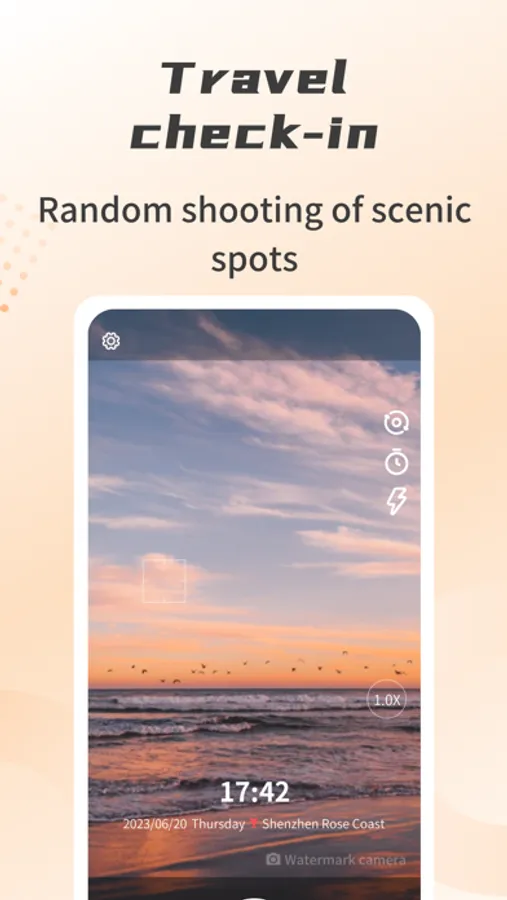 A professional camera that adds watermarks to photos. When selecting a watermark and taking a photo with just one click, the watermark photo is automatically generated, allowing you to take photos while checking in, constantly recording your life~