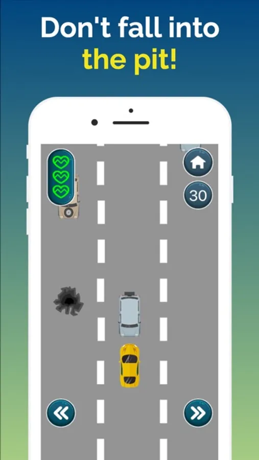Dodge the oncoming traffic! Didn't hit the pit! Score as many points as possible! Compete with your friends through Game Center. You will have several cars to choose from!