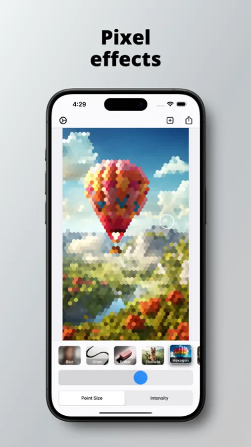 Versatile Editing Tools: Explore a plethora of editing options with Point Blurr. Our tools range from drawing and pixelating to erasing. Experiment with unique effects like hexagon, sepia, vignette, color invert, exposure, and monochrome to elevate your images.