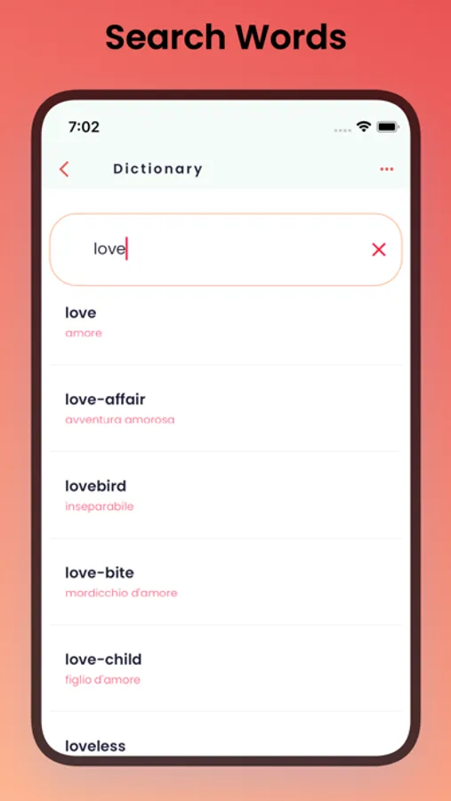Easily search your desired English words and you will find there corresponding translated word in Italian language.