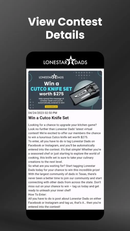 Even though the App is still in some development stages. It’s a great start to a very safe place for Husbands and Fathers. I’m in the Dallas Chapter and it does a lot of events and meet ups. I highly recommend if you’re a man your download and have fun connecting, going to events and enjoy the free contests