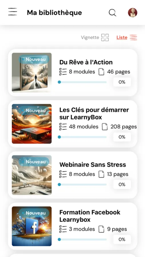 - Switcher en un clic entre vos différentes formations learnybox