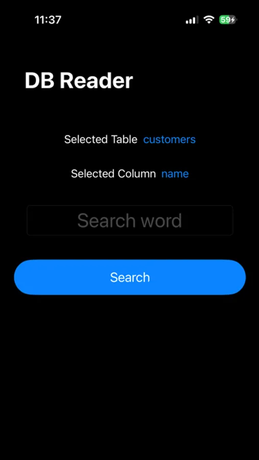 DBReader is a simple app allows you to fetch SQLite file data. Customize your search by selecting desired search table and column .