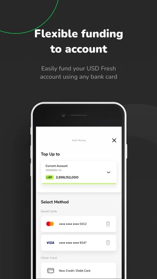 - Load your Fresh USD Account effortlessly using any other Bank card.