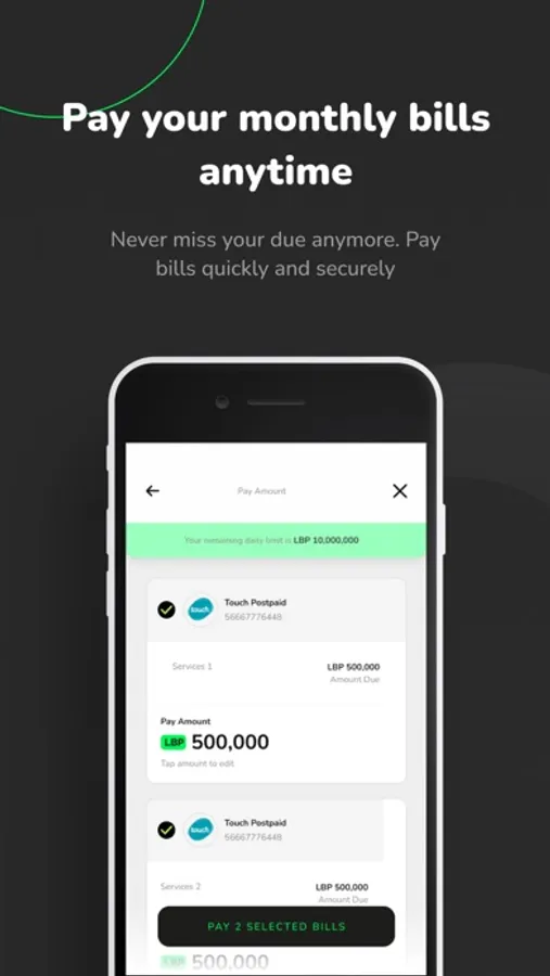 - Settle your Bills hassle-free.