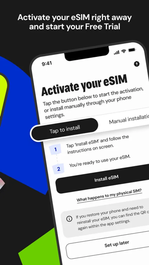 - Activate your eSIM in minutes, no waiting for a SIM card in the post.