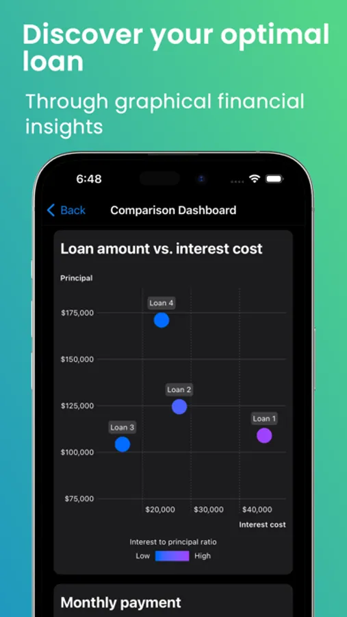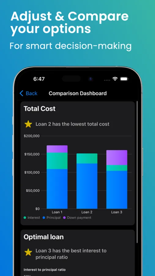 - Compare loans based on 3 key criteria and identify the most suitable loan.