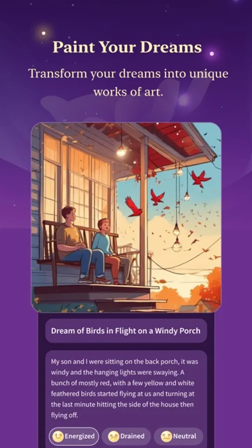 - Artistic Dream Visualization: Turn your dreams into meaningful art, as AI crafts unique visuals that capture the essence of your dream stories and emotions.