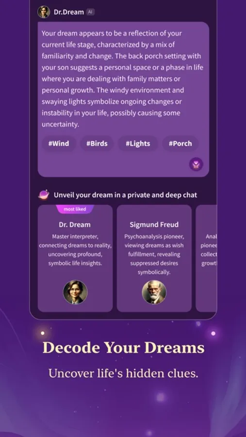 - In-depth Dream Interpretation: Combining cutting-edge AI technology and psychological expertise to decipher your dreams, forging connections to life events to provide comfort and guidance.