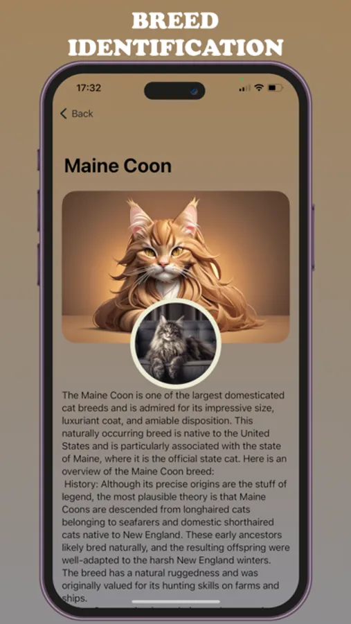 Breed Identification: Explore the wonders of your cat's heritage with our latest CoreML model. Simply take a photo or upload one from your gallery, and our app will accurately identify your cat's breed. It doesn't stop there – you'll also receive a detailed description, shedding light on their breed-specific traits and histories.