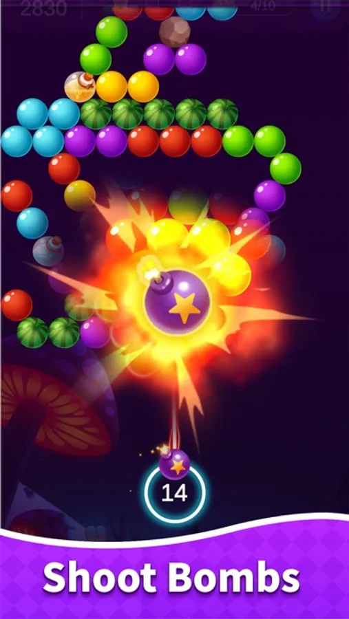 - Aim, fire, and complete the elimination by matching 3 or more bubbles of the same color.
