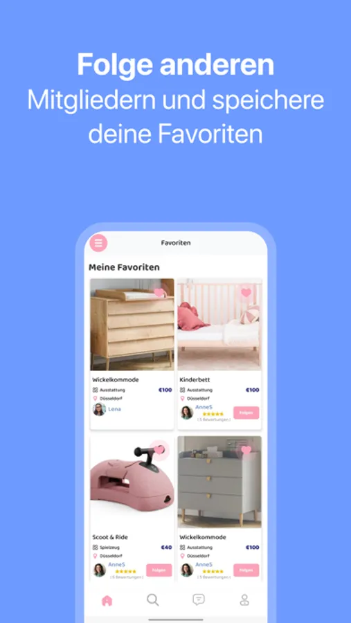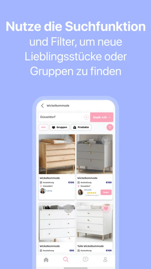 Additionally, the app’s diverse filtering options make it easy to find items nearby. This way, moms can purchase items from other moms that are either in excellent condition or even unused. The app offers a variety of features that guarantee a great user experience, including advanced item search, messaging, favorites, follow function, my groups, and group management.