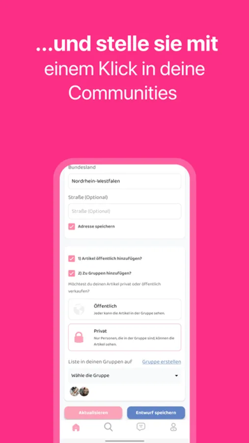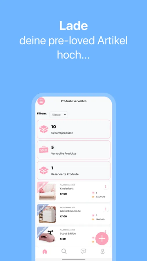 The little floh flea market app makes it incredibly easy for moms to buy and sell pre-loved baby and toddler items among themselves. With just a few clicks, moms can create private or public selling groups and invite friends and acquaintances to join. To help groups grow faster, additional admins can be added. There is also the option to join existing groups in your region. The group's newsfeed displays the latest items. Users can effortlessly arrange item pickups or discuss shipping options through direct messages. The integrated rating system ensures a consistently positive experience for all users.