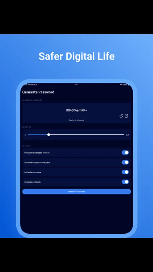 Once you've generated a password, you can easily copy and paste it into the password field of the website or service you're signing up for or signing in to. You can also save your passwords to the app's built-in password manager, so you can easily access them later.