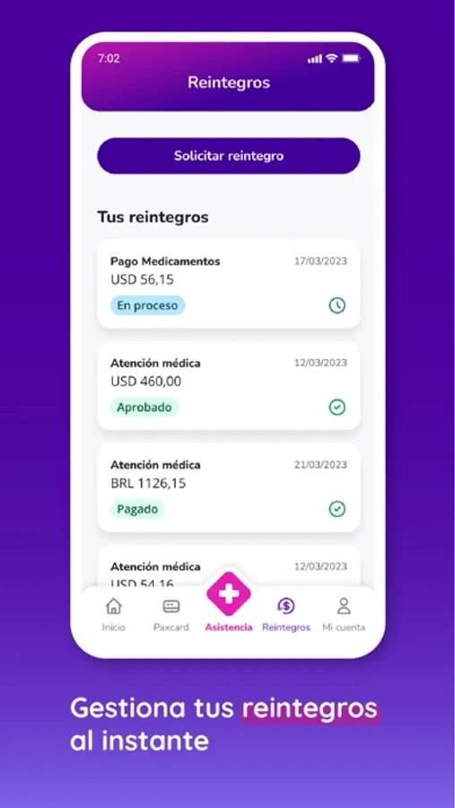 - Gestioná tus reintegros y revisa el estado de los mismos