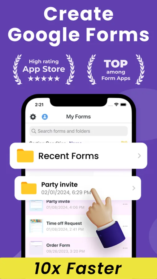 - Manage your forms by deleting, renaming and moving via folders - Use templates to create new forms faster