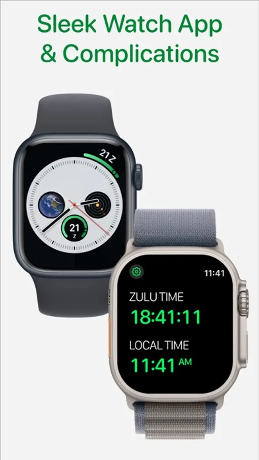 • Apple Watch App & Complications: Stay connected on the go with our Apple Watch integration. Check Zulu time directly from your wrist with our sleek interface and enhanced complications, perfect for pilots and busy professionals.