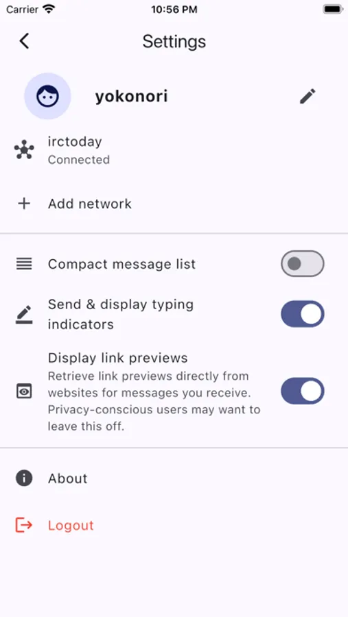Goguma is an IRC client for mobile devices. It offers a modern IRC experience with support for many IRCv3 extensions and IRC bouncers.