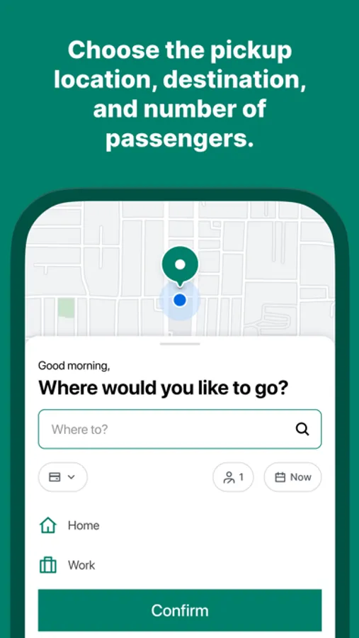 The app tells you exactly which places and districts are included in the areas. To join the ride, simply book a seat via the app.