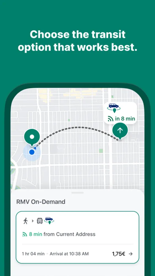 With the OnDemand@RMV app, you can book all on-demand offers in the Rhein-Main transport network conveniently and easily: