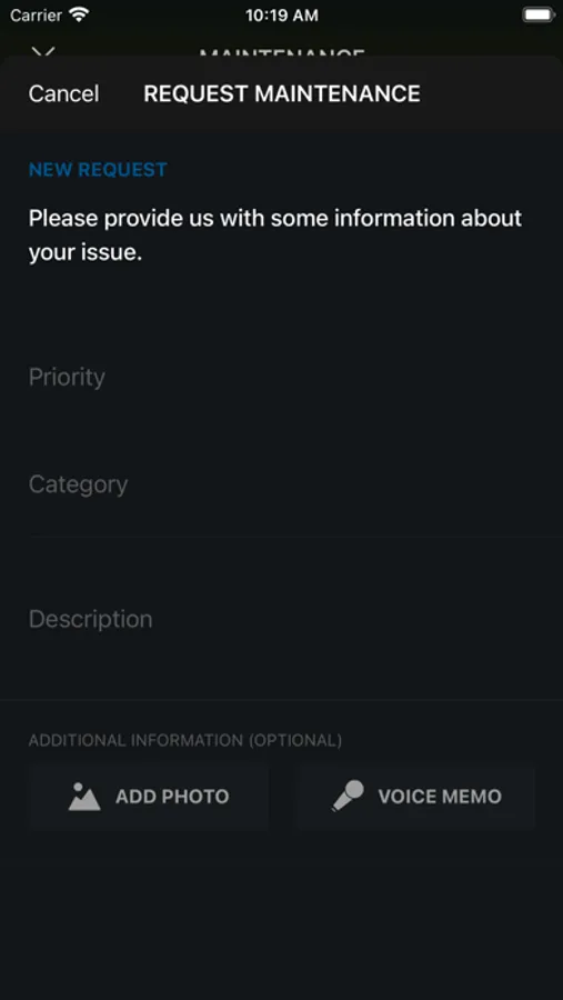 - Submit maintenance requests, accompanied by pictures and voice notes, and monitor their progress seamlessly.