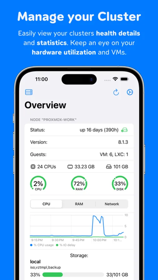 With ProxMate you get a quick and easy overview of your Proxmox cluster, servers and guests.