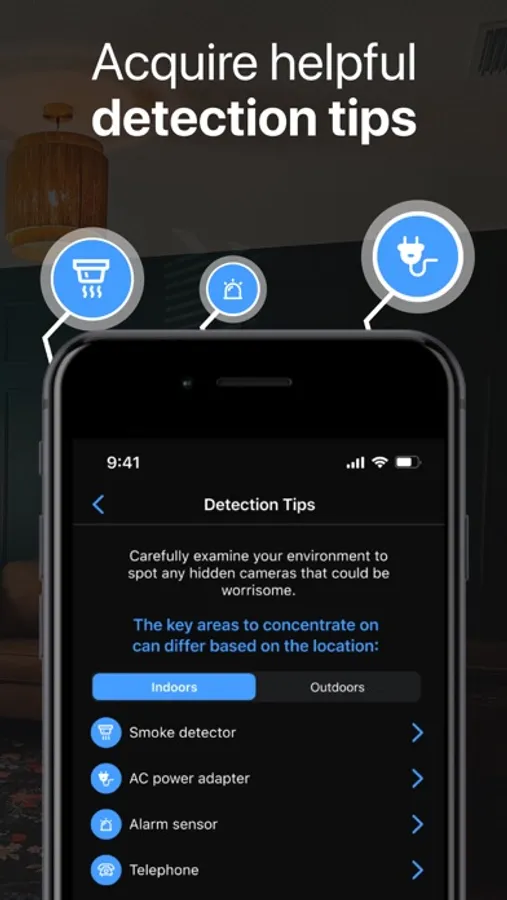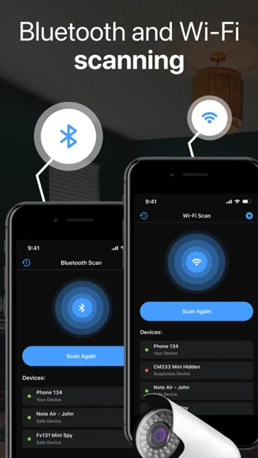 Your Hidden Camera Detector is your ultimate companion for quickly identifying devices in your vicinity. With a simple tap within the app, you can reveal all devices connected to your network, including cameras detected by the built-in scanner. Moreover, this app allows you to uncover concealed electronic devices hidden within furniture or household items, making it a valuable tool for searching for potentially questionable devices in sensitive areas like hotels, conference rooms, and restrooms.