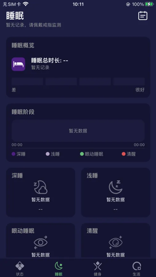 (1)Sleep data display: Records the body sleep data by the smart ring, and provides professional sleep health statistics and analysis.
