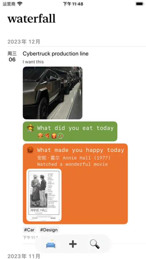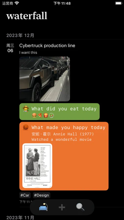 Moreover, Waterfall is fully featured — it supports Markdown, making your text even more expressive. You can also associate tags and pictures with your memories, turning them into visual echoes.